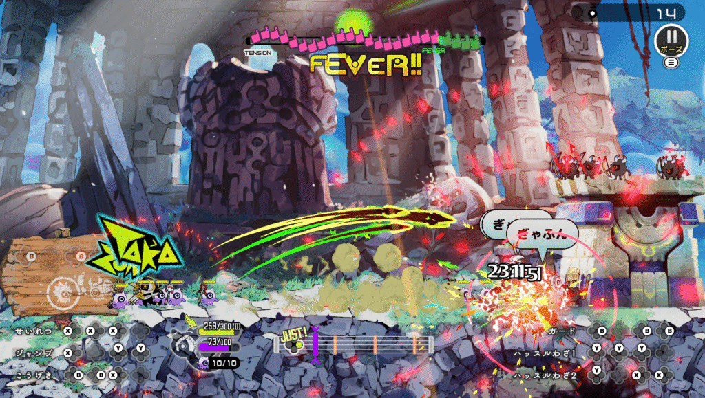 コンボをミスすることなく継続させるとフィーバーモードに突入します